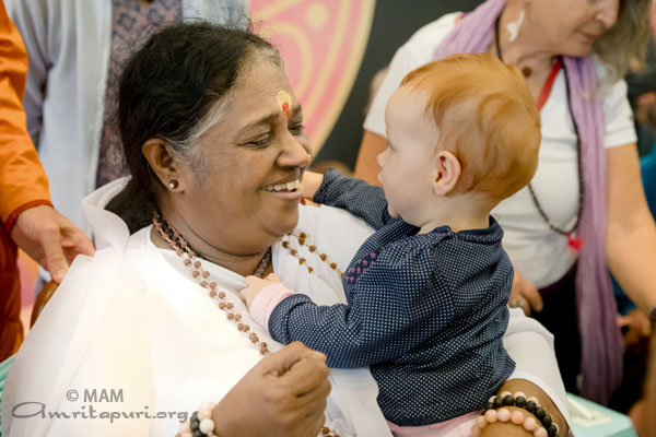 અમ્માને એક કહાણી યાદ આવે છે. એક ગુરુને બે શિષ્યો હતા. બંને શિષ્યો એક સમાન અહંકારી હતા. એટલું જ નહિ, પરસ્પર એકબીજાનું ખરાબ બોલતા રહેતા. ગુરુએ ઘણા સમજાવ્યા છતાં, તેમના સ્વભાવમાં કોઈ પરિવર્તન આવ્યું નહિ. છેવટે ગુરુએ એક ઉપાય શોધી કાઢ્યો. એક દિવસ રાત્રે, જયારે તેઓ બંને ગાઢ નિદ્રામાં હતા, ત્યારે ગુરુએ તેમના ચહેરા વિવિધ રંગોથી, વિદૂષક જેવા રંગી દીધા. સવારે તેમાંનો એક ઊઠયો. પાસે સૂતેલા બીજાને જોઈ મોટેથી ખડખડાટ હસવા લાગ્યો, “હા..હા.. હી.. હી…” એમ. હાસ્યનો અવાજ સાંભળતા બીજો શિષ્ય જે હજુય સૂતો હતો, જાગી ગયો. આંખ ચોળીને જોયું તો તેની સામે તેનો સહપાઠી હાસ્ય કરતો બેઠો હતો. તેનો ચહેરો જોઈ, બીજો શિષ્ય મોટેથી અટ્ટહાસ્ય કરવા લાગ્યો. બંને એકબીજાના ચહેરા જોઈ મોટેથી ગર્જના કરતા હસવા લાગ્યા. આ વચ્ચે કોઈ કયાંયથી એક અરીસો ઉપાડી લાવ્યો અને તે બંનેમાંથી એકને દેખાડતા કહ્યું, “અરે, જો તો ખરા…” તેણે તે અરીસો પોતાના હાથમાં લીધો અને તેને ફેરવી બીજાના મુખ પર દેખાડતા કહ્યું, “પહેલાં તું તો જો..” આ સાથે બંને જણ હસતા બંધ થયા.
